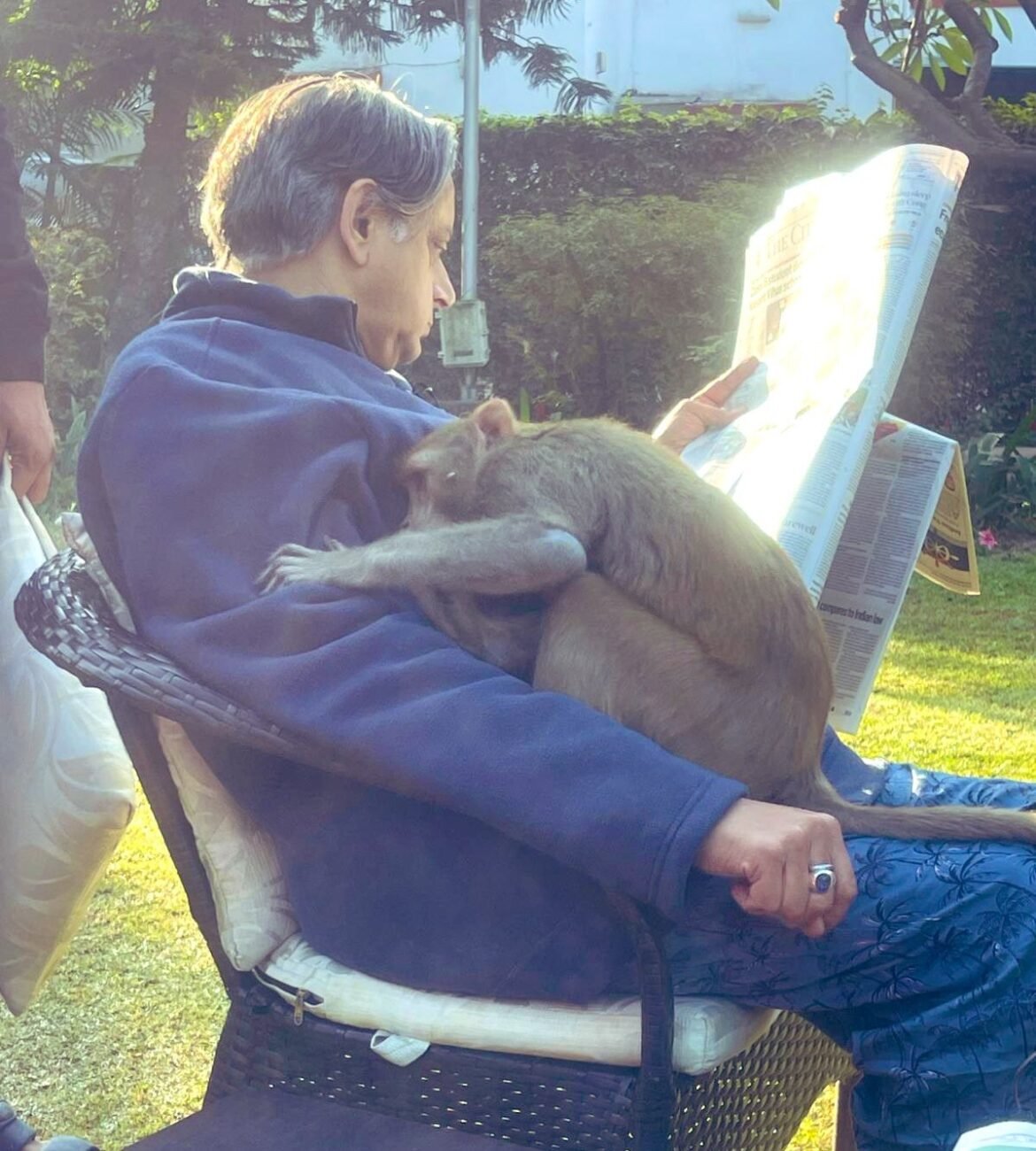 थरूर ने इसे “असाधारण अनुभव” बताते हुए लिखा, “जब मैं सुबह अपने बगीचे में अखबार पढ़ रहा था, एक बंदर आया और सीधे मेरी ओर बढ़ा। वह मेरी गोद में बैठ गया।”